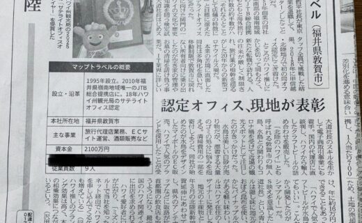本日の福井新聞朝刊に、ハワイサテライトオフィスオブザイヤー2025受賞の紹介記事を掲載頂きました。 ...