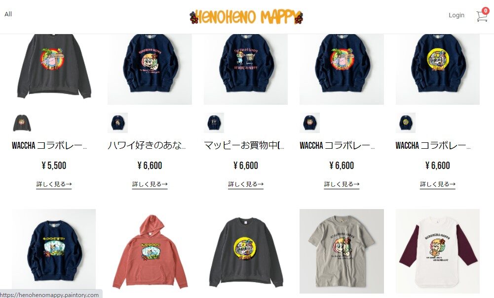 個性的なオリジナル商品がそろうマーケット「SUZURI」。こちらでは、『HENOHENO MAPPY 』公式グッズを幅広いラインナップでご用意しております。こちらは海外発送対応も可能です。