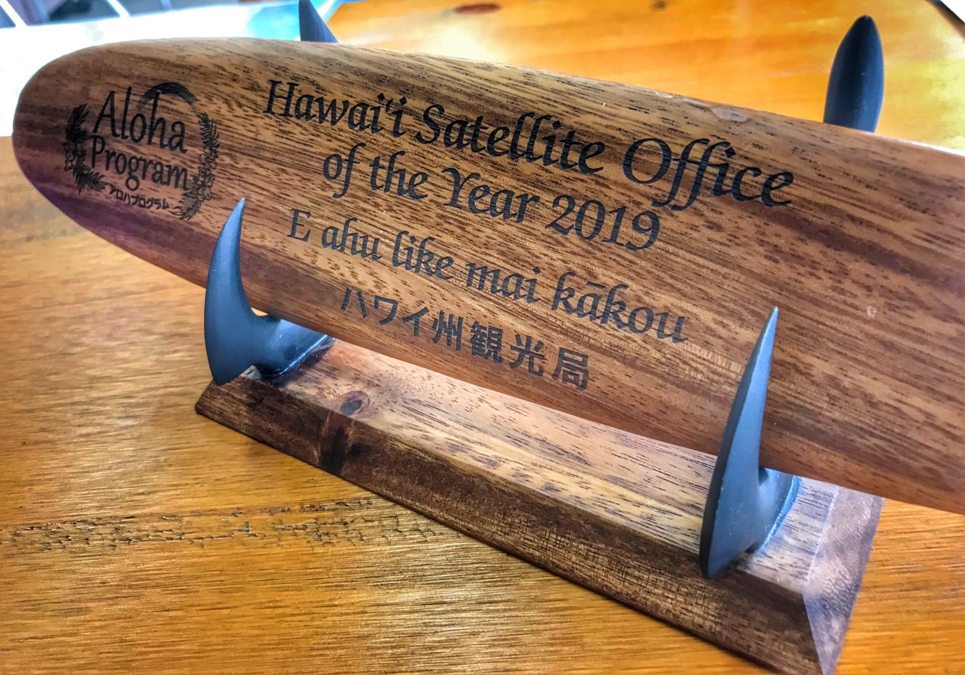 2020年1月、ハワイ州観光局より、年間を通じてハワイプロモーションを積極的に行い、サテライトオフィスとしてアロハプログラムへ貢献した店舗として、「ハワイサテライトオフィスオブザイヤー2019」として表彰されました。ハネムーン・家族旅行等でハワイをご検討のお客様は、ぜひ弊社にご相談ください。