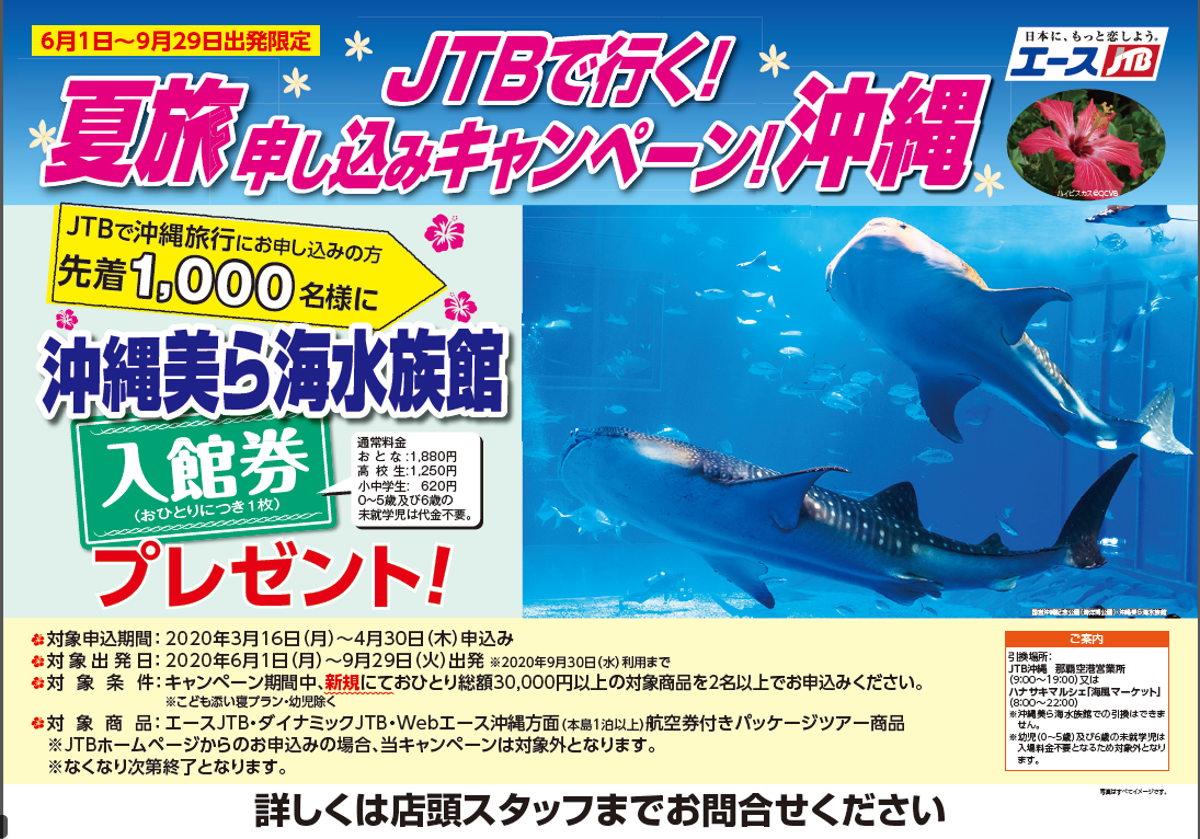 こちらは沖縄。初めての方ならほぼ行きますよね、美ら海水族館。その無料入館券付きです。お得です。