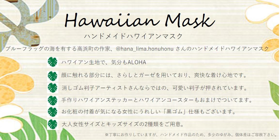 これからの夏に向けてハワイアン柄のマスクもいかがでしょうか? 遠方にお住まいの方にもご発送承ります。