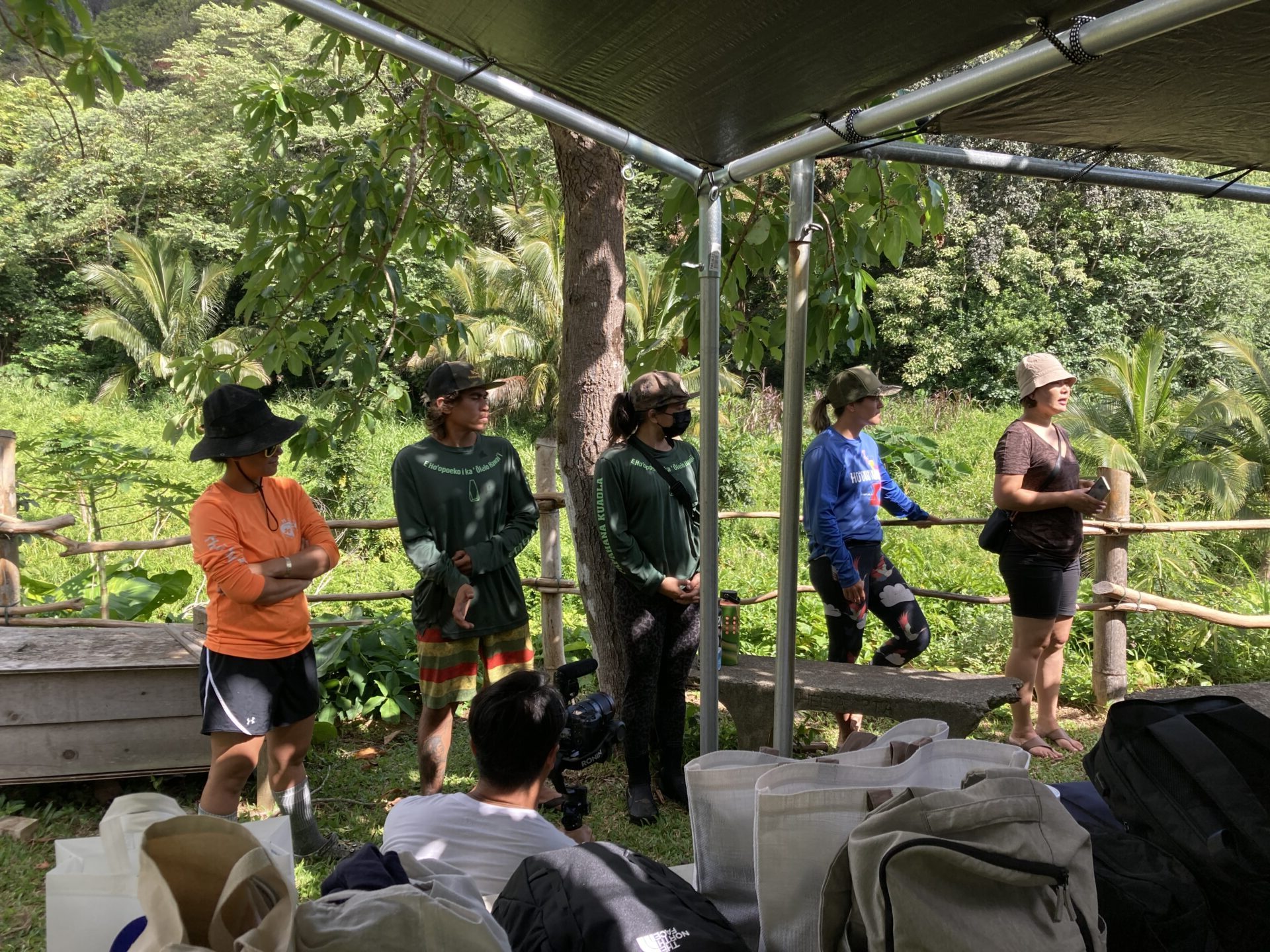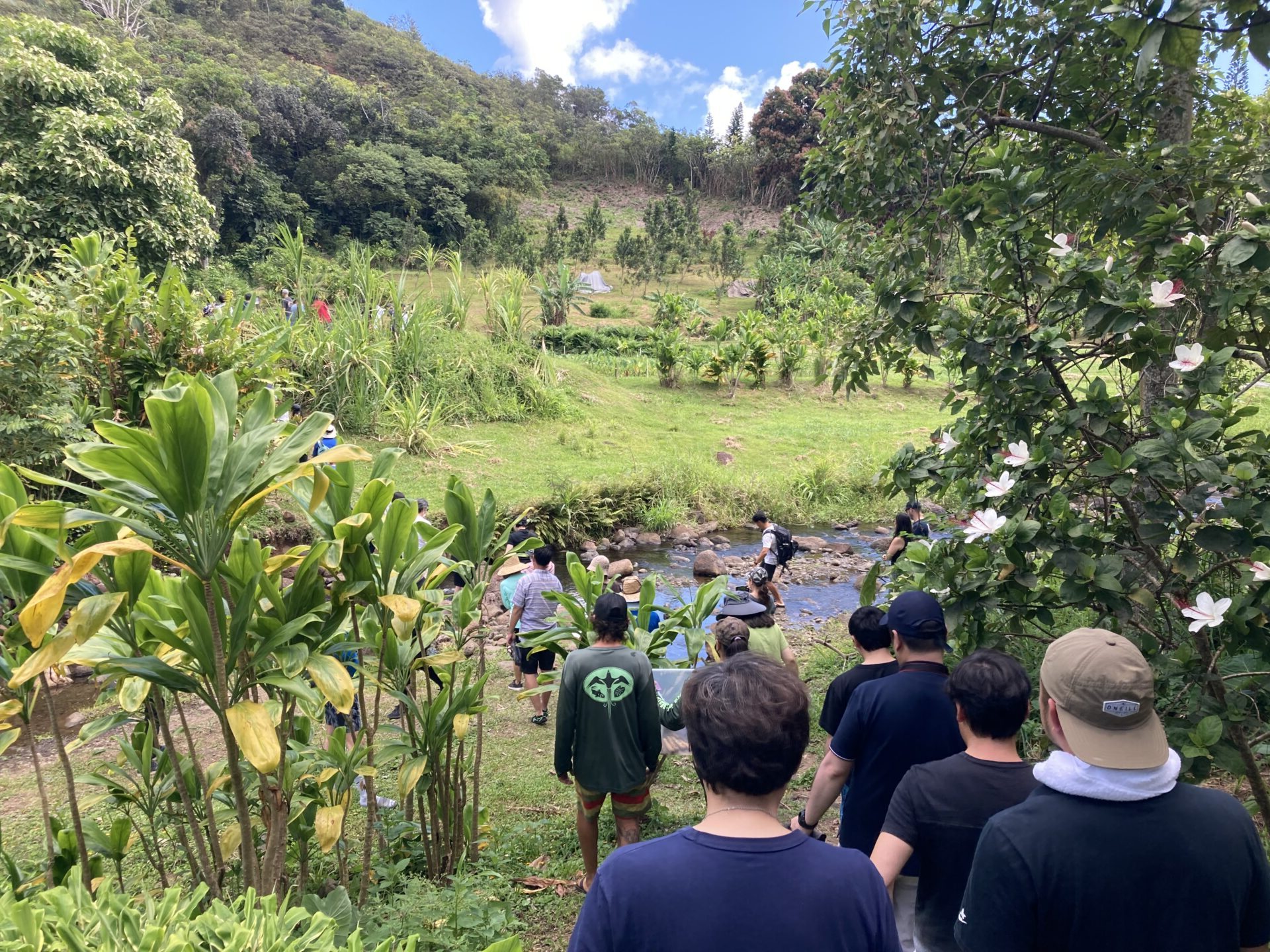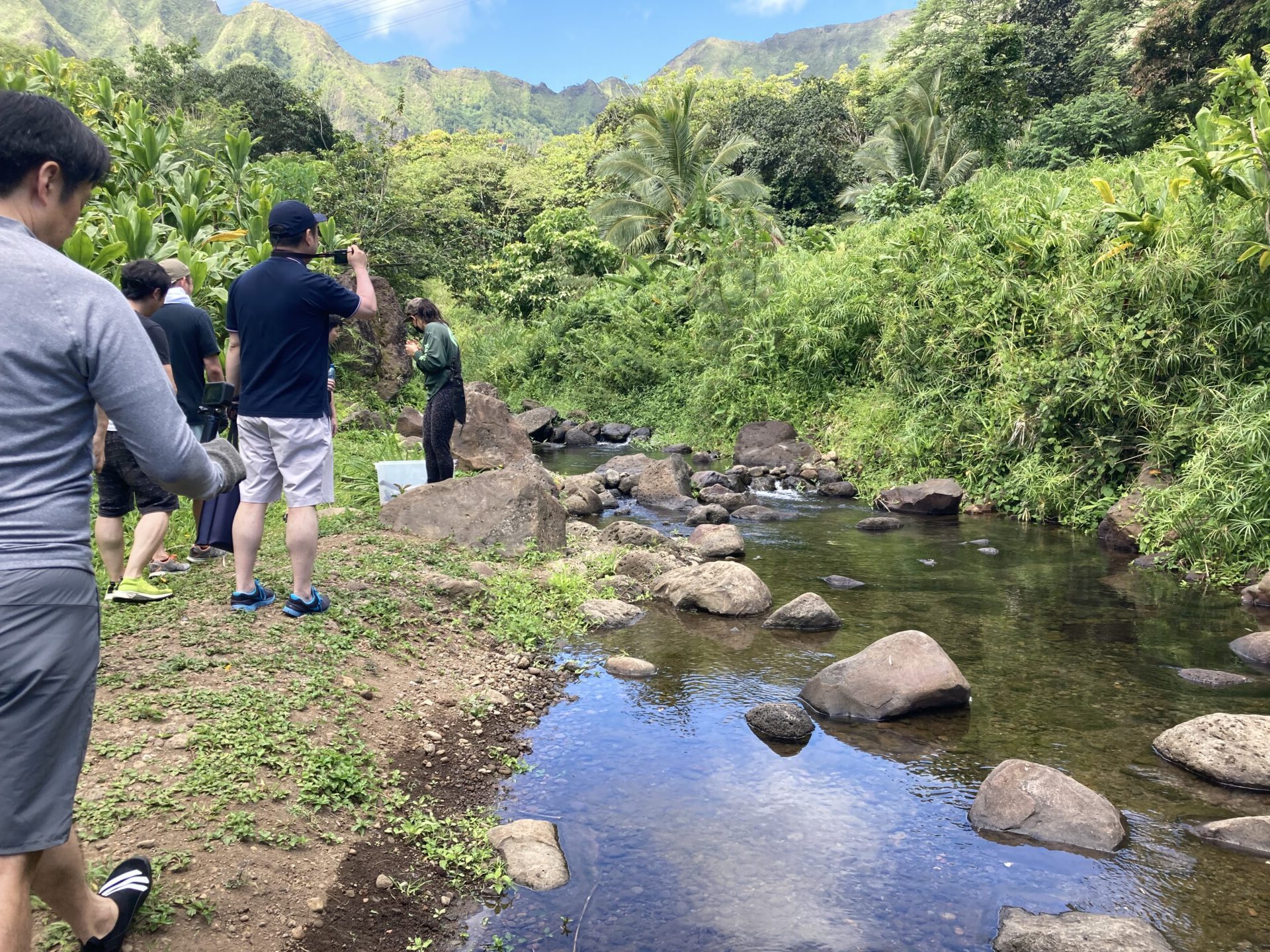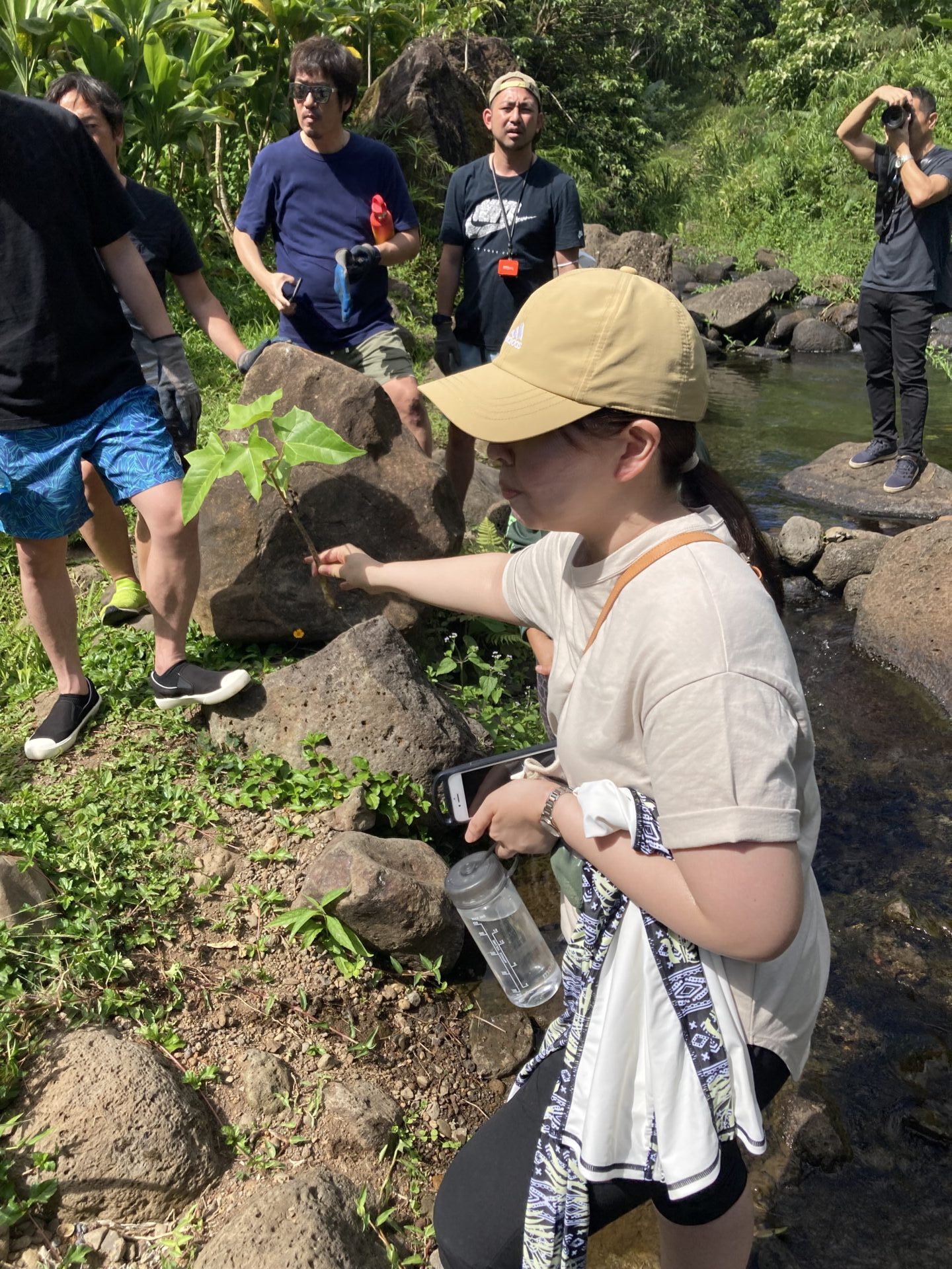 今回は2班編成に分かれて、私のいたAチームとBチームが最初に小川の外来種の植物伐採、Cチーム、Dチームがタロ畑の雑草伐採活動となり、それぞれテレコで実施しました。トイレも簡易ですがありますし、手を洗う場所も整備されております。