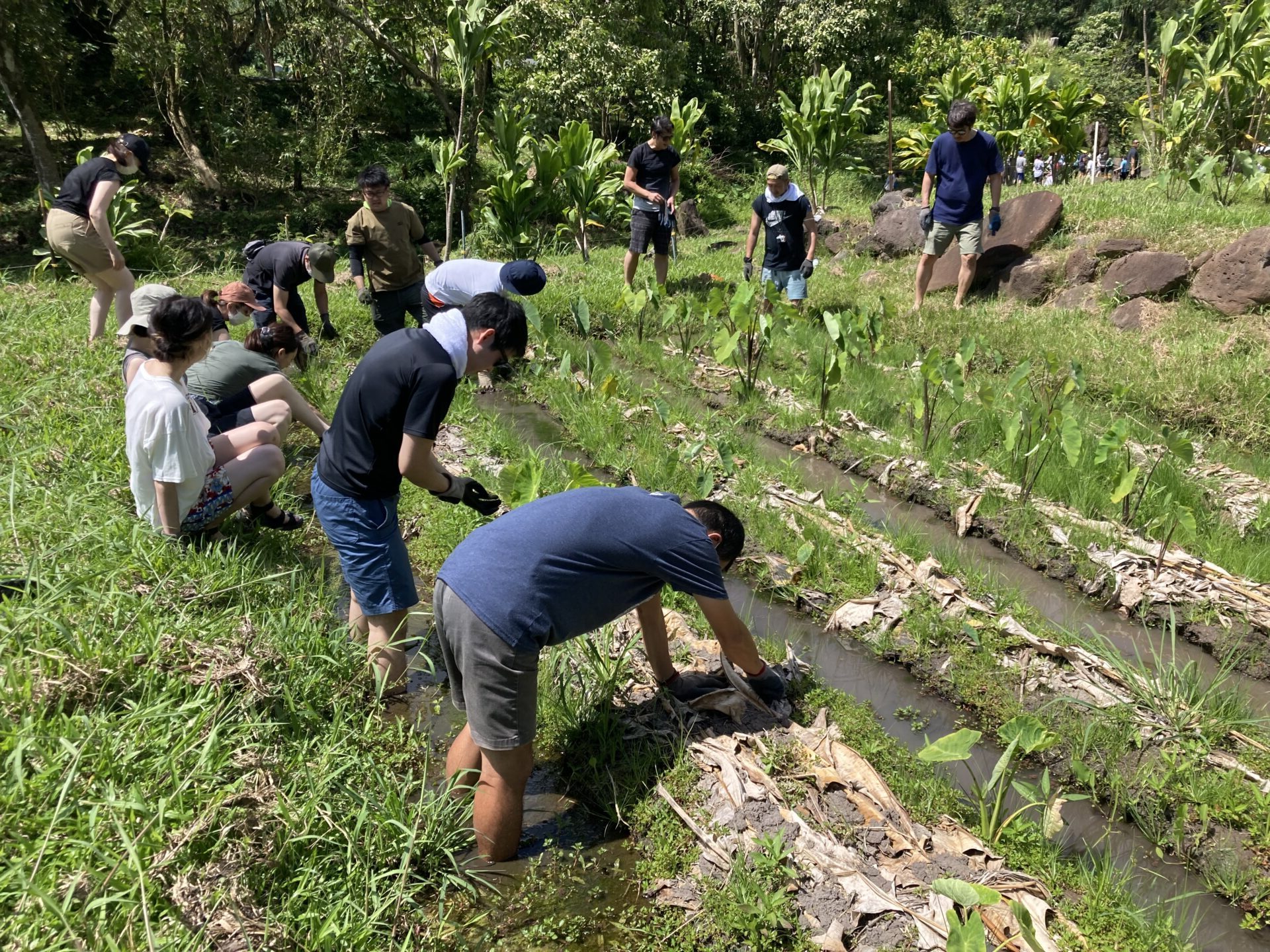 続いては、タロイモ畑に移動です。そうです、これが泥の中に入る作業ですね。逆の流れが良かったですねwww