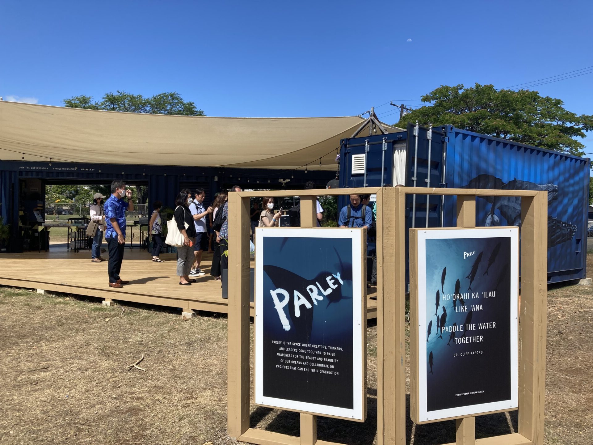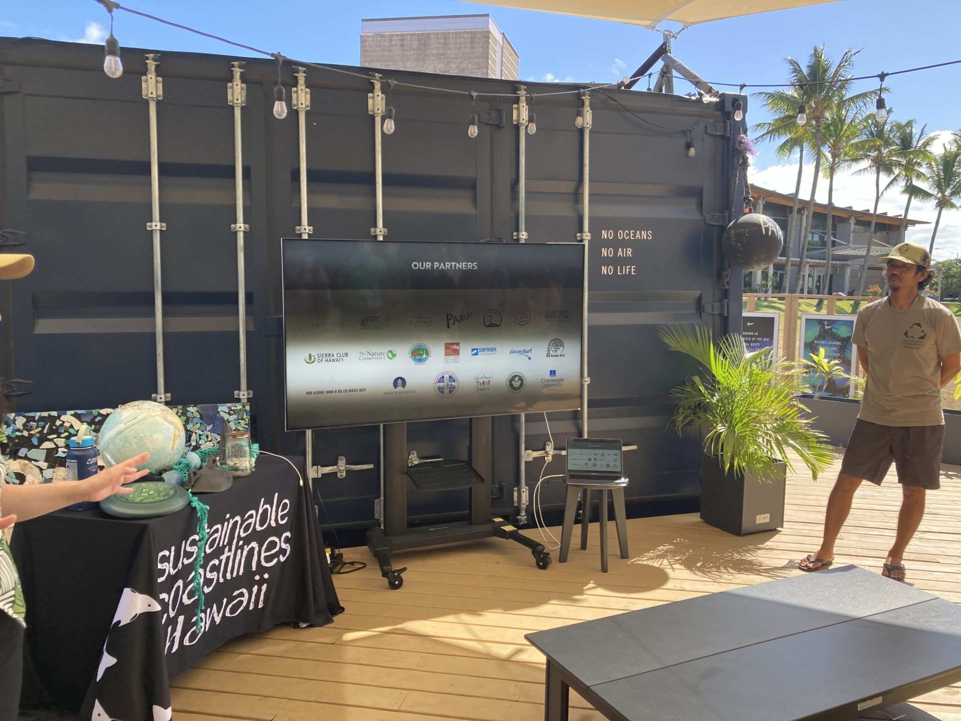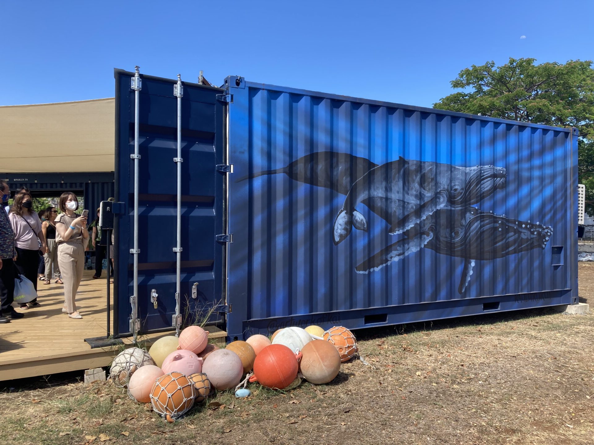前来た時にはなかった、コンテナ型の「Parley x sustainable coastlines Hawaii のマイクロプラスチック、アップサイクル活動の展示ブース。