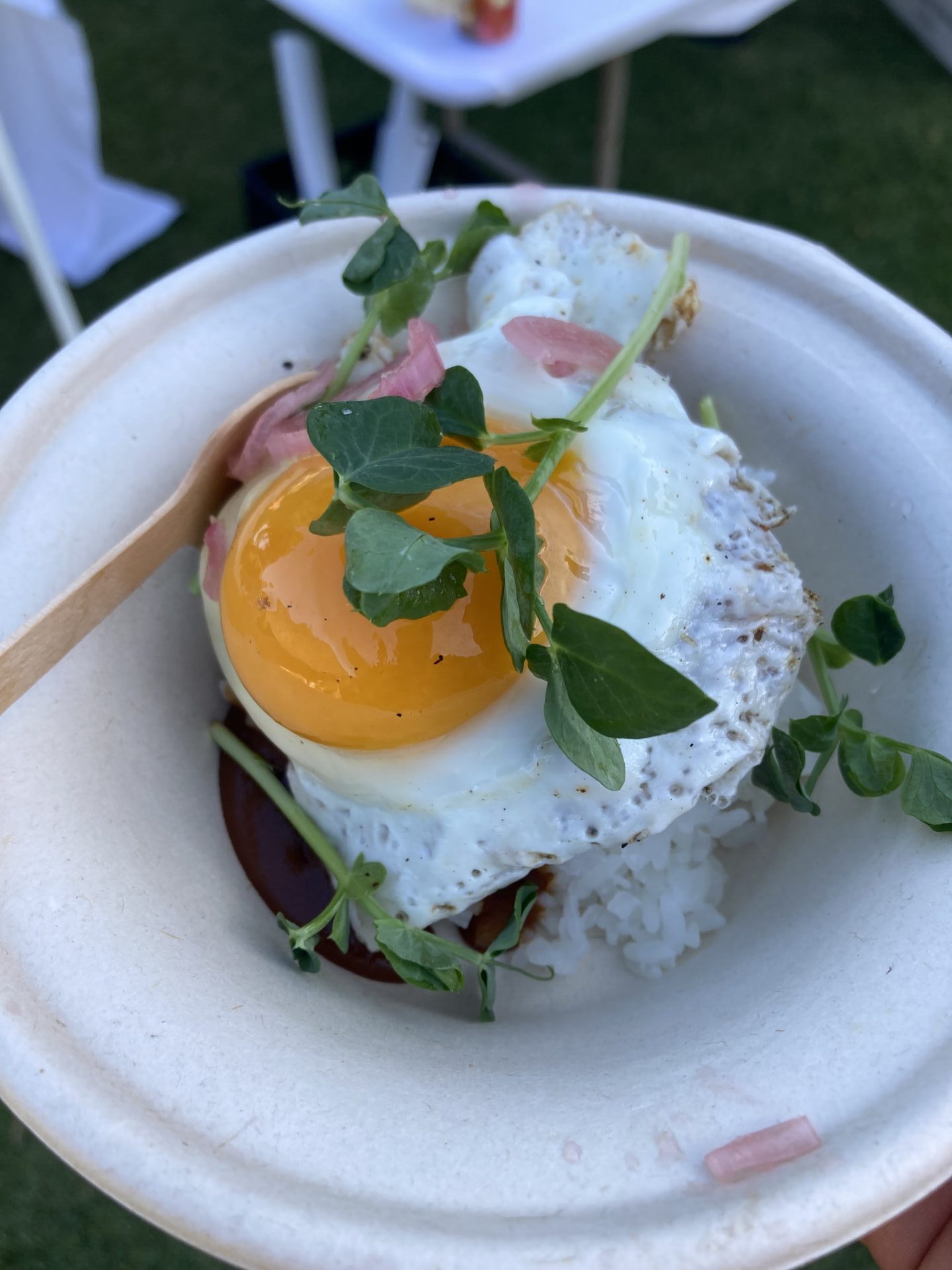 あたり一面ジューシーなお肉の最高のにおいを醸し出していたロコモココーナー。