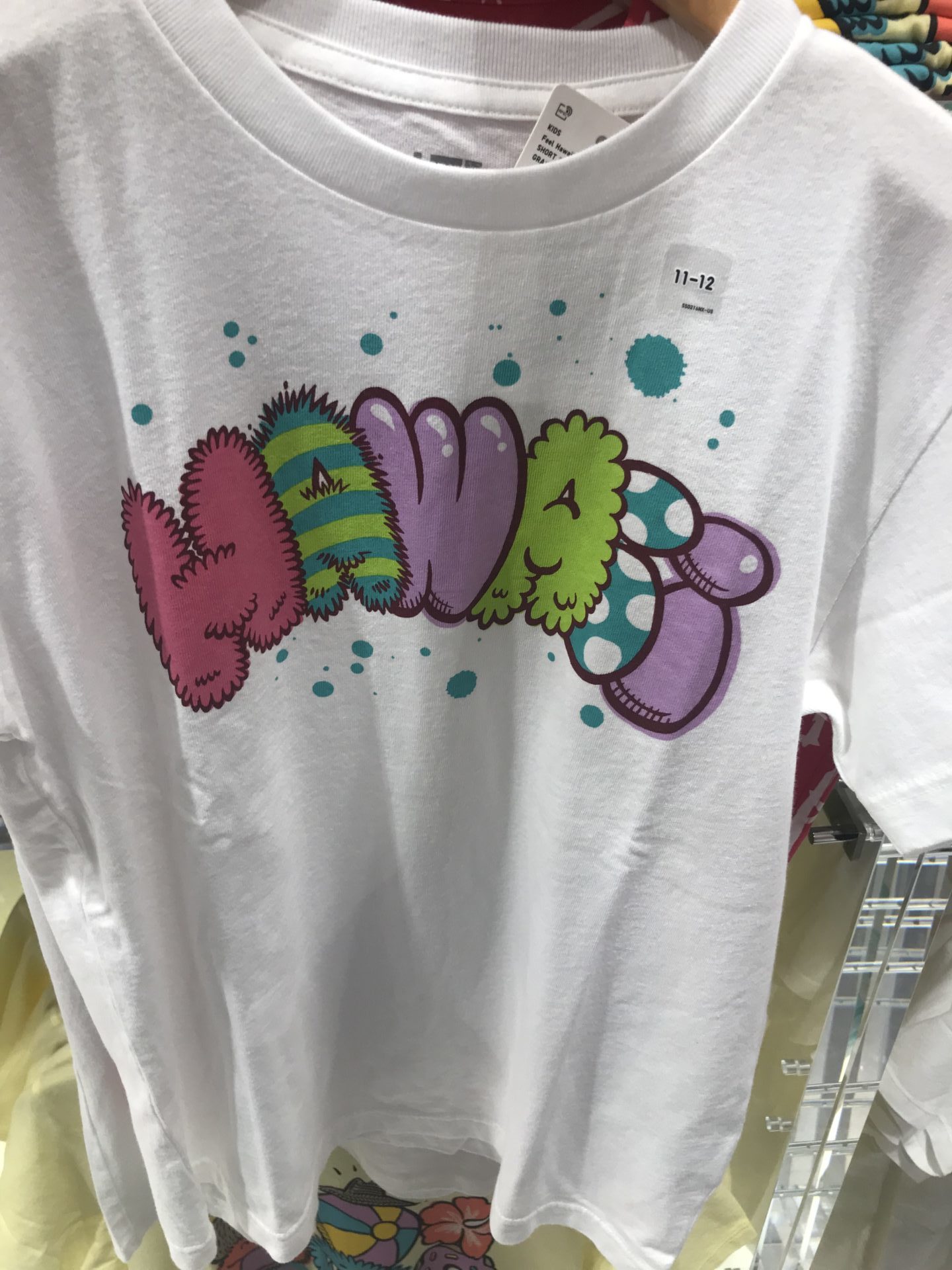 一度見ると、かわいさにはまり、非常に気になるところ。実はハワイ以外では、ソウル、パリ、神戸のメリケンパークなどにも書いてくれてます。また、アパレル関連のコラボレーションも増えてきており、ハワイのユニクロでは、Tシャツも販売してます。