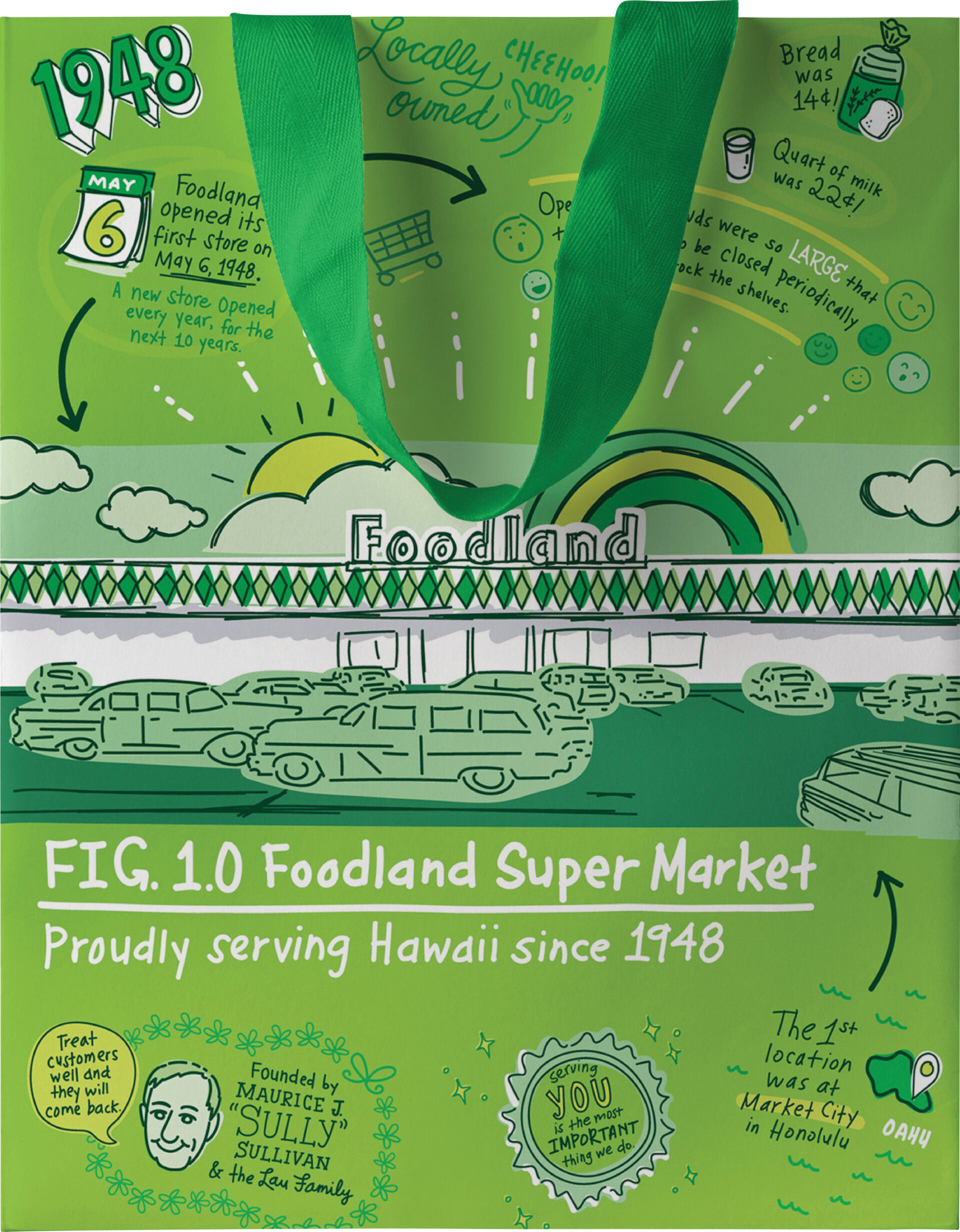 1948年に故モーリスJ.サリバン氏により創業、ハワイに開業した最初の地域密着型スーパーマーケット。以来地元ハワイの人々に長年にわたり愛され、2023年5月に75周年を迎えた。現在は、オアフ島、マウイ島、ハワイ島、カウアイ島の4つの島に31店舗のフードランド、フードランドファームズ、サックNセーブを展開している。
