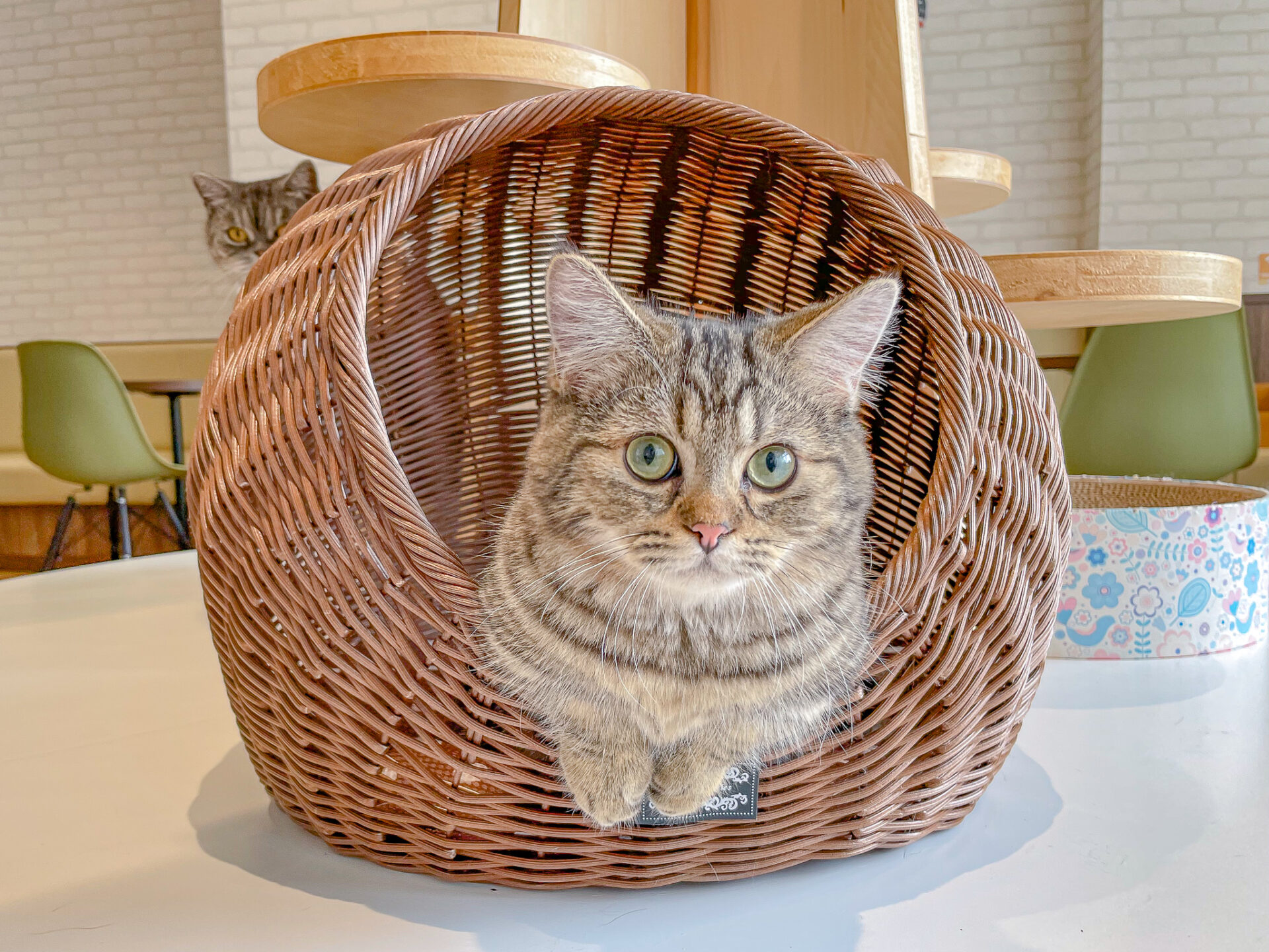キャットカフェ・モフには、ネコの生態を正しく理解したプロの飼育員が在籍しており、清潔で開放感のある店内で、顧客は約20頭の様々な種類のネコたちとふれあうことができる。