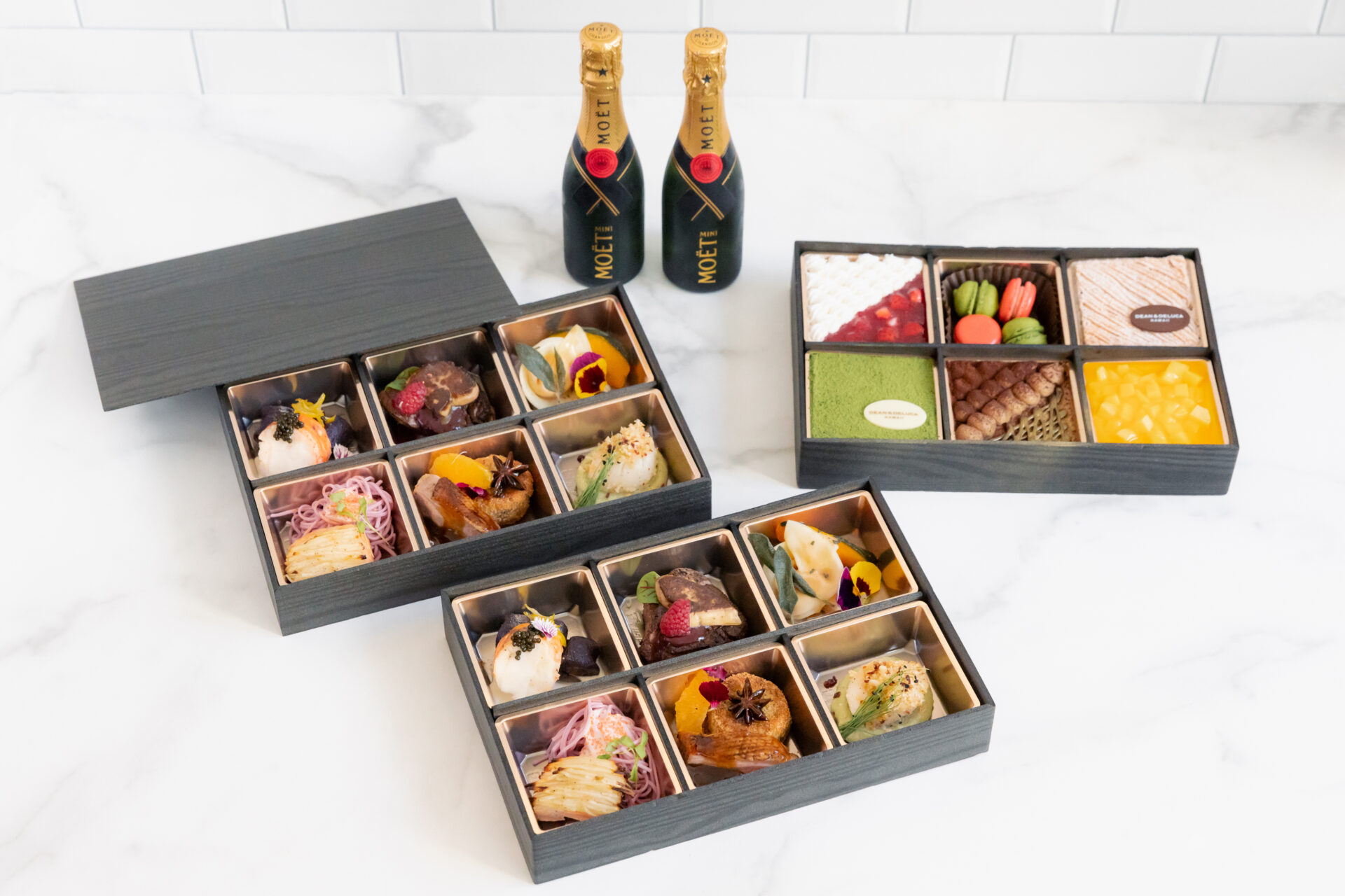 毎年好評の特選食材を詰め合わせたプレミアム洋風おせち。1セット(おせち2箱とデザート1箱)で2名様分、数量限定で12/15までオンラインにて予約を受け付けている。