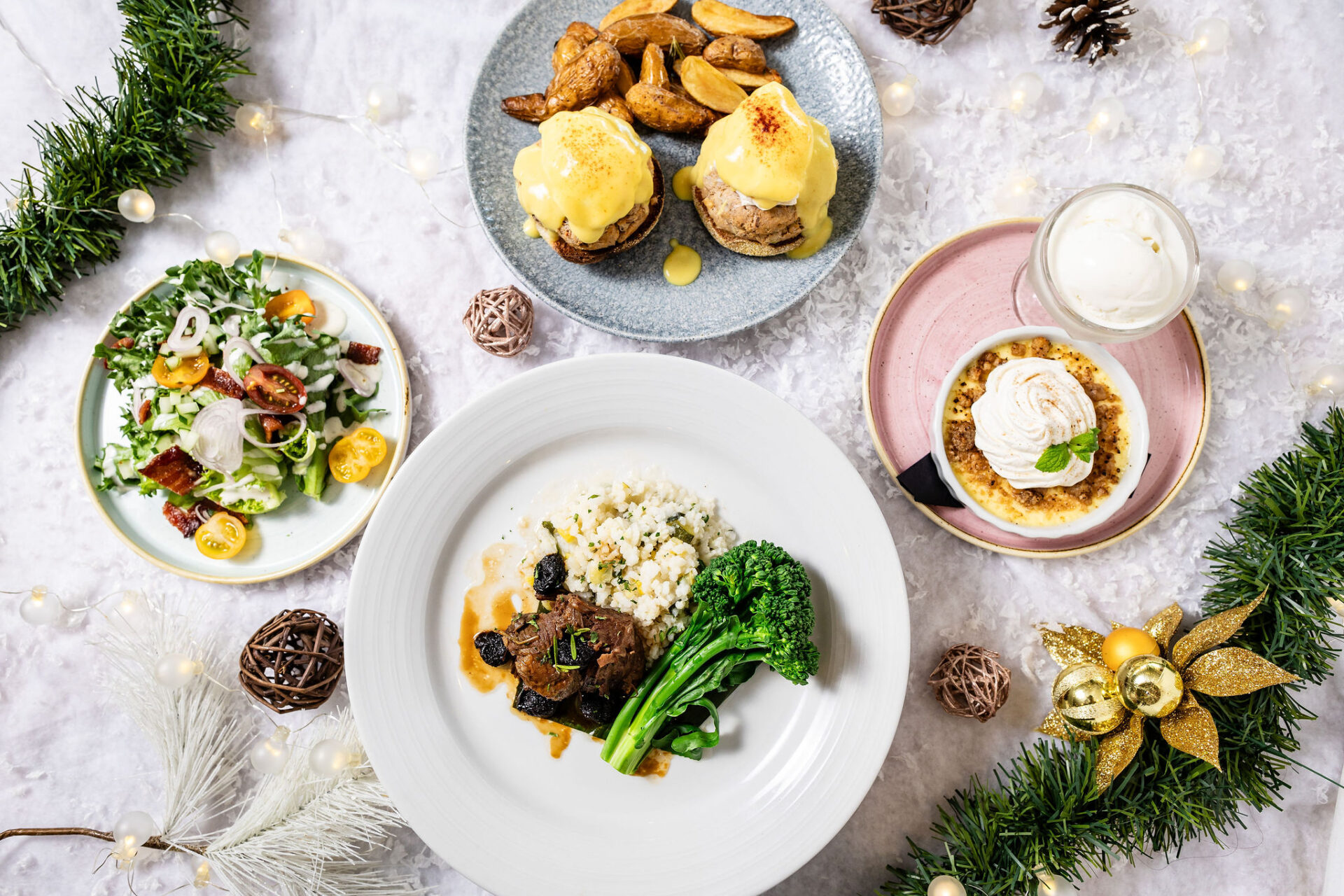 12月18日(水)から31日(火)まで、通常のブランチとディナーメニューに加え、旬の素材を用いた季節限定メニューが登場。ブランチの目玉、「8オンスプライムリブアントレ($48)」は、口の中でとろけるほどじっくりローストしたプライムリブ。付け合わせのマッシュポテトと季節の野菜と共に。また、メリーランドスタイルの「クラブケーキベネディクト($27)」も冬に味わいたい逸品。ディナーのおすすめは「サーフ&ターフ($65)」。グリルしたラムチョップに特製のチェリーデミグラスソース、ハワイの高級白身魚オパカパカには、抹茶マカダミアナッツをトッピングして香ばしく仕上げてある。