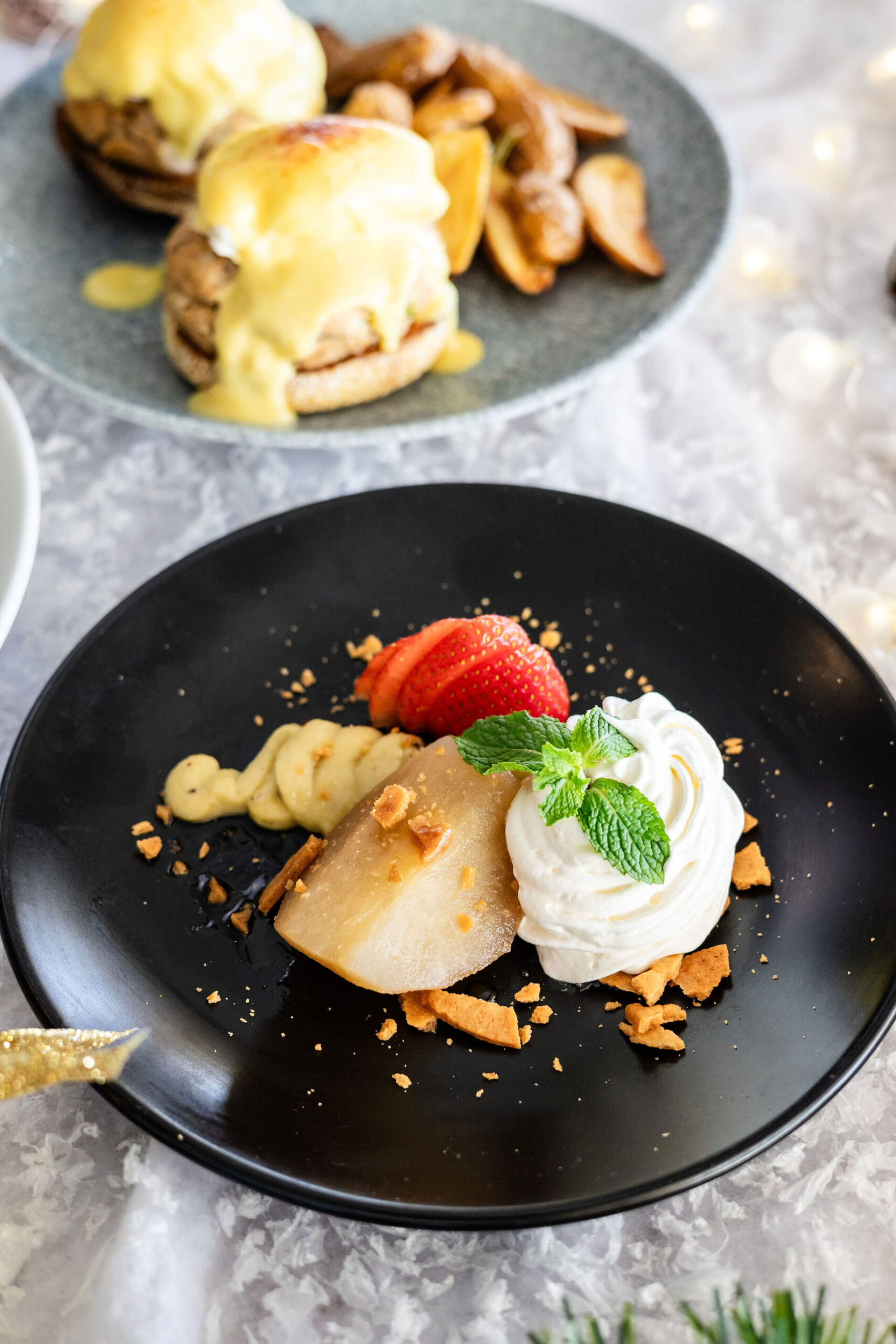 季節に合わせて常に更新しているデックのカクテルメニューとデザートも好評。フォトジェニックでおいしく飲みやすいホリデーカクテルと、濃厚な「チョコレートチーズケーキムース($12)」や、温かいカスタードと冷たいバニラジェラートを一緒に楽しむ「麹アップルカスタード($15)」など、ホリデー特別メニューと一緒に味わいたいカクテルとデザートが揃う。