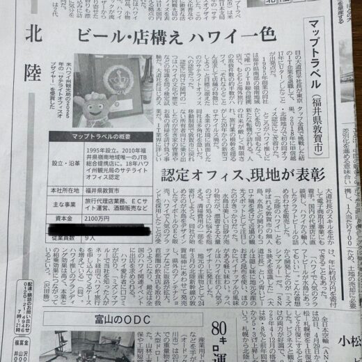 本日の福井新聞朝刊に、ハワイサテライトオフィスオブザイヤー2025受賞の紹介記事を掲載頂きました。 ...