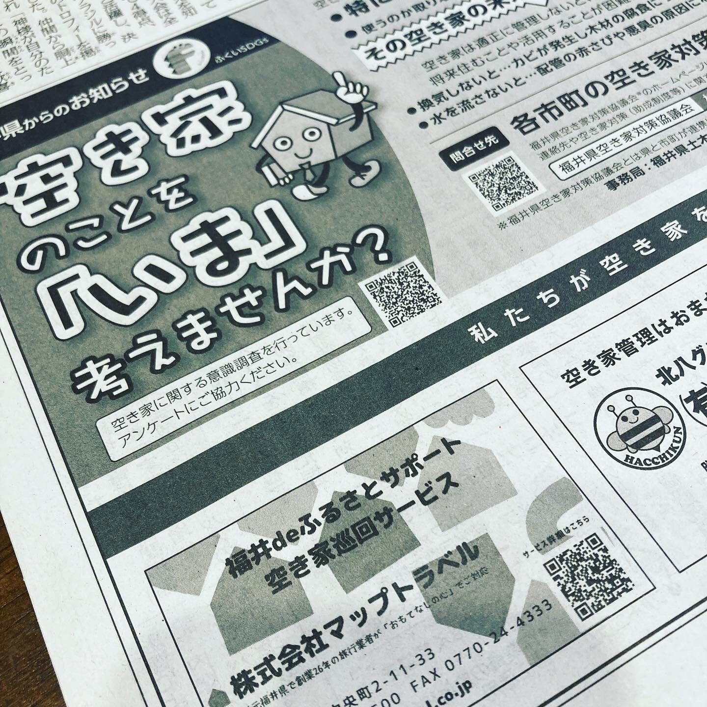 本日の福井新聞朝刊に、「福井deふるさとサポート(空き家巡回サービス)」のPR記事が掲載されました。