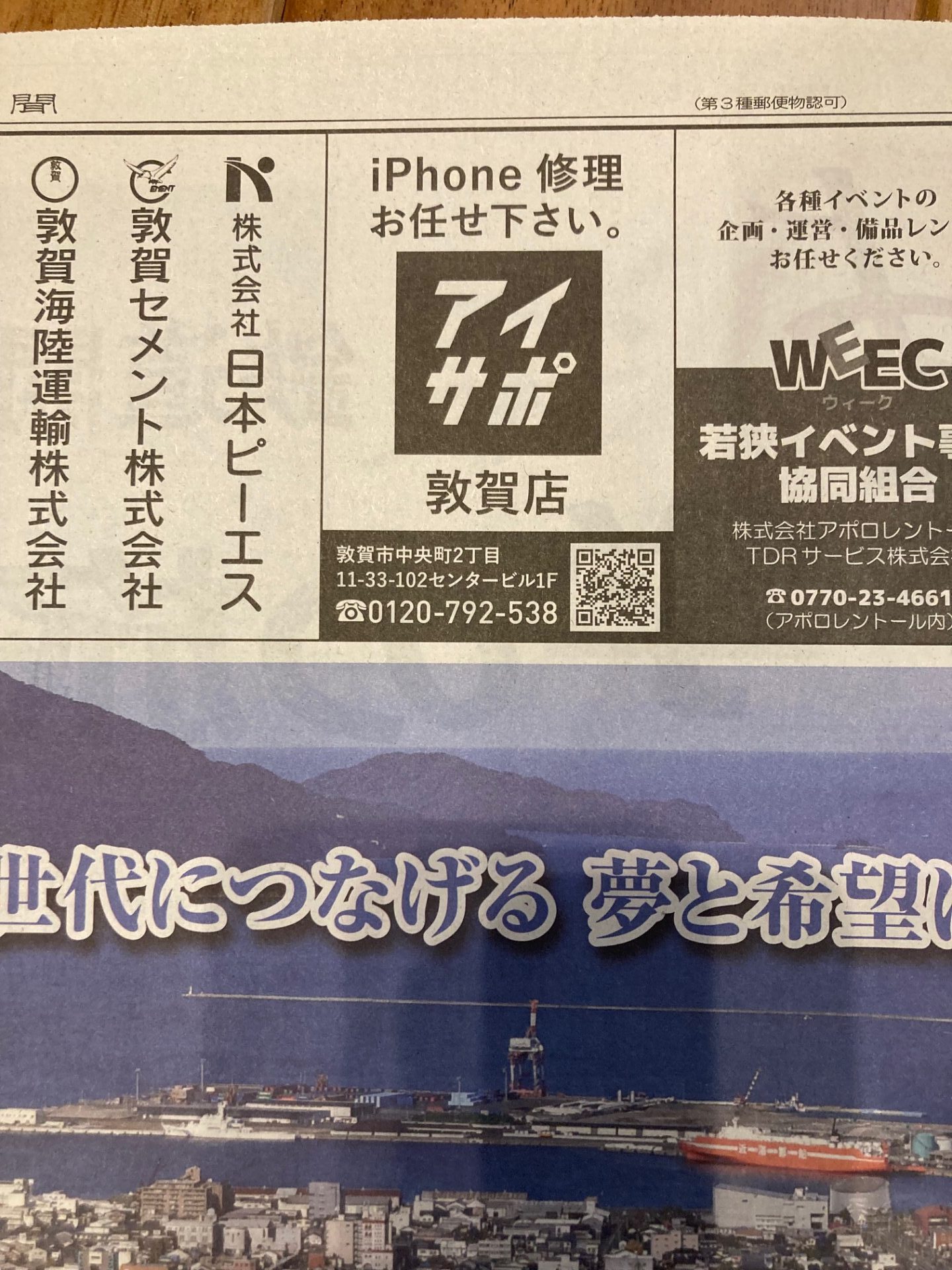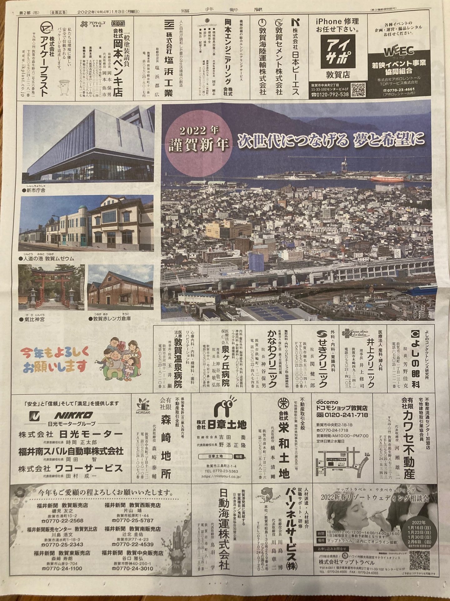 2022年1月3日(月)の福井新聞朝刊に年賀広告を掲載頂きました。