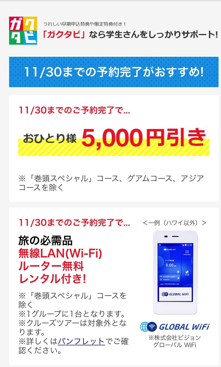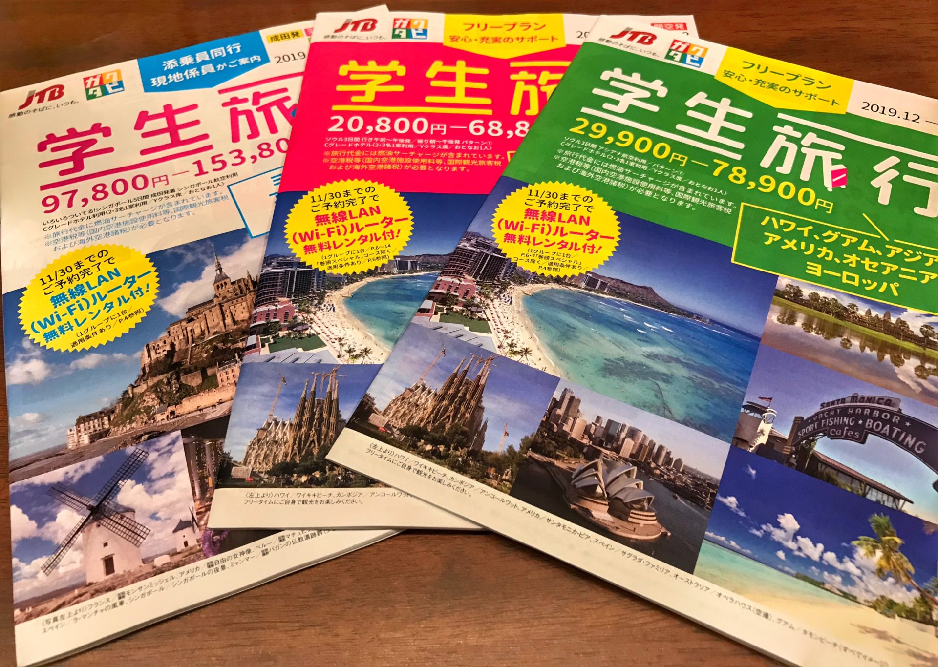 毎年このシーズンに到着する「学生旅行」「卒業旅行」向けのガクタビパンフレット。