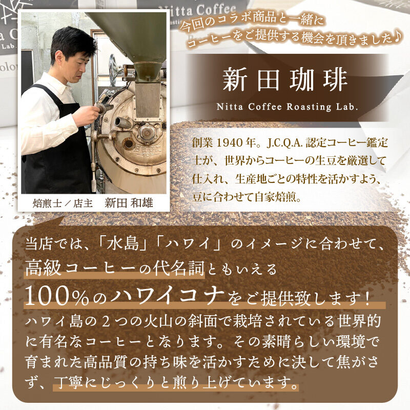 9月28日(火)からは、敦賀市のふるさと納税にも返礼品として出品されました!地元で人気の珈琲店、「新田珈琲」さんとのコラボレーションです。100%コナコーヒーとのセット返礼品となります。敦賀市以外にお住まいの方はこちらからもどうぞ。