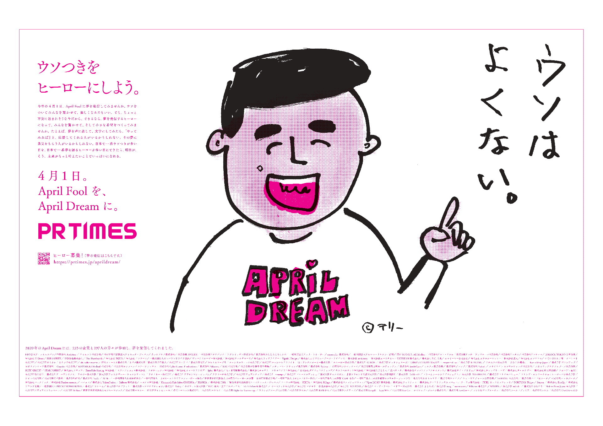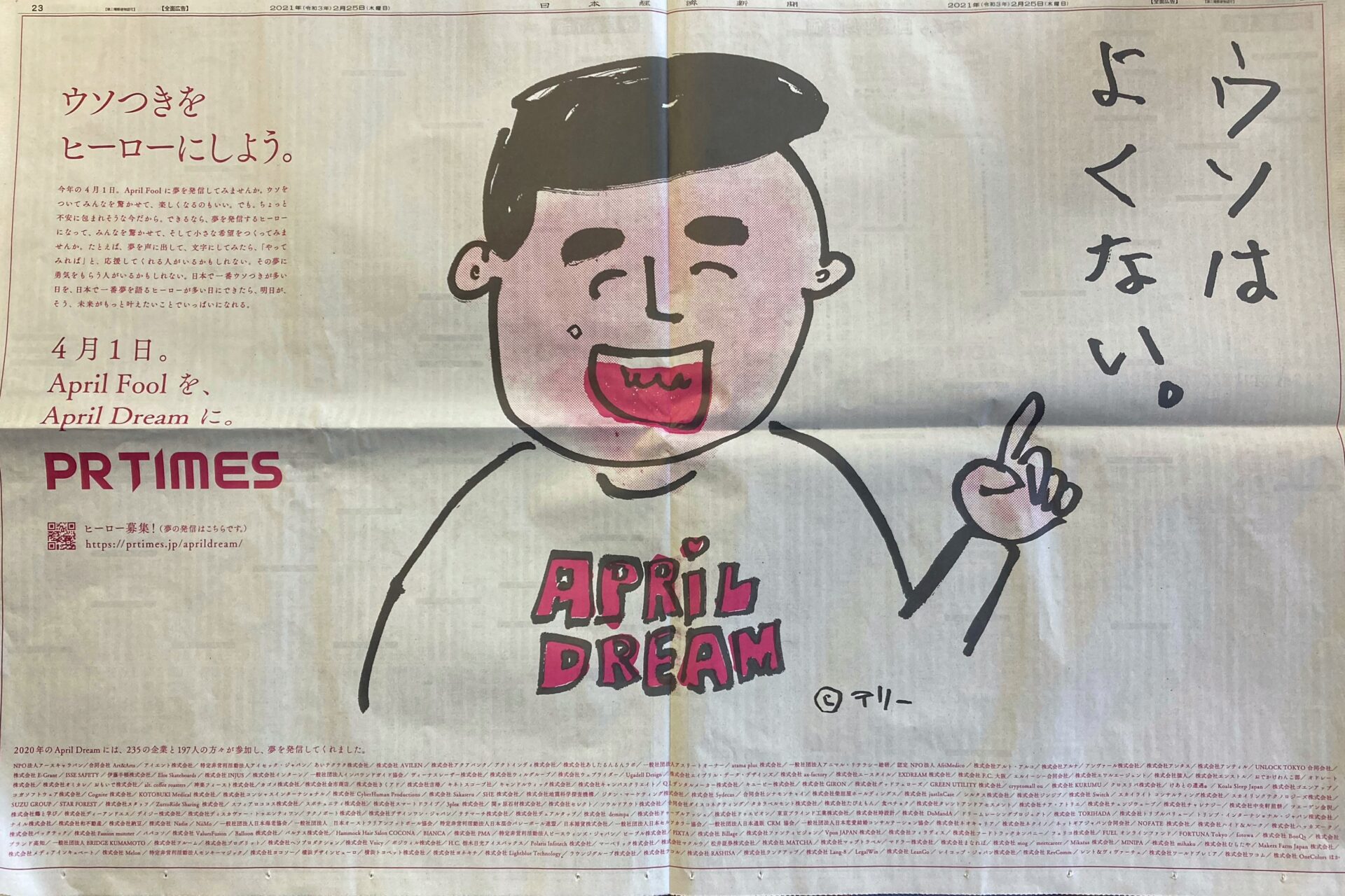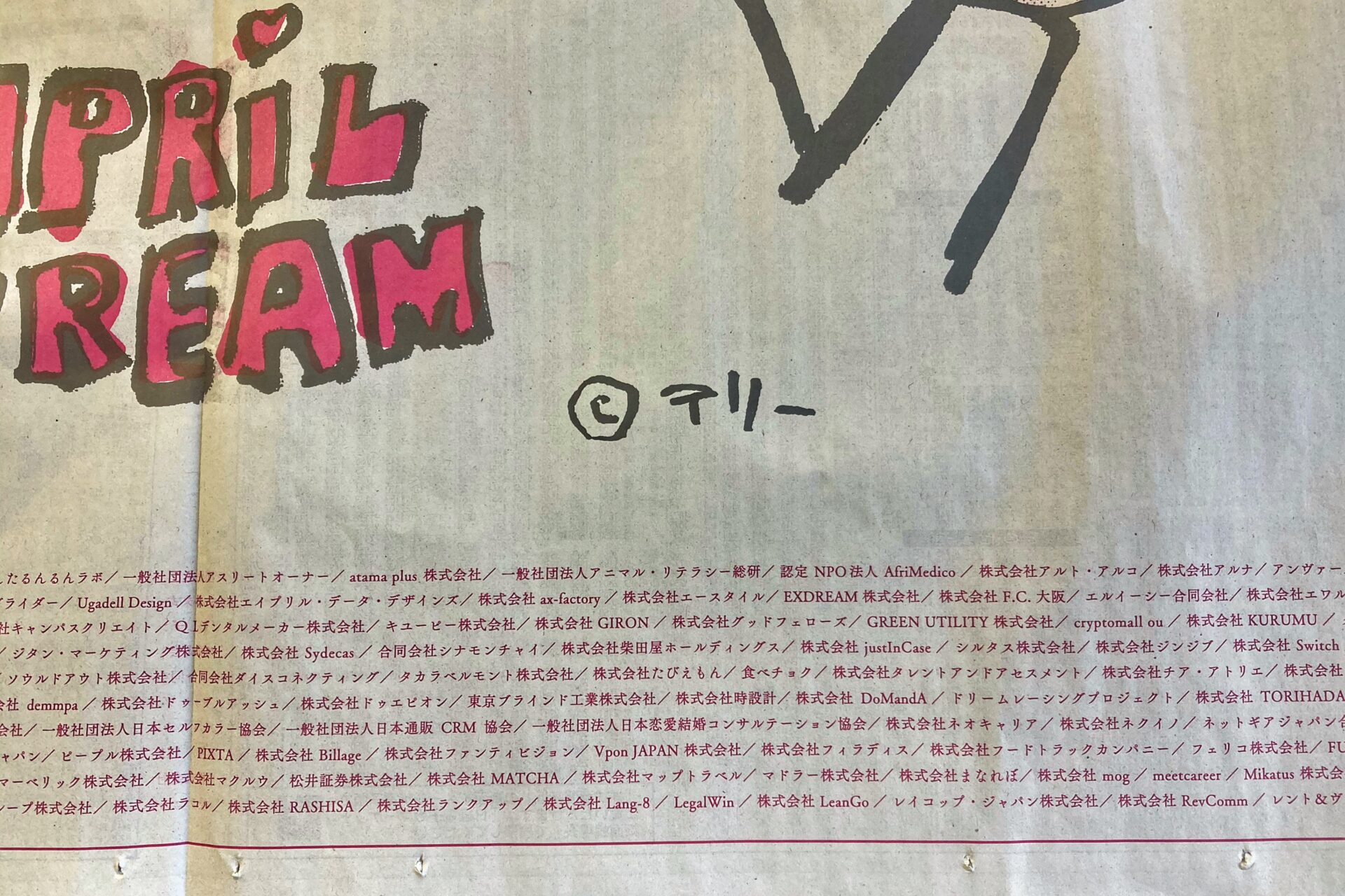 今回の広告は、昨年より始められているプロジェクト「April Dream」の告知です。昨年このプロジェクトに参加させていただき、そのご縁で今回のこの広告に弊社名も記載頂いております。