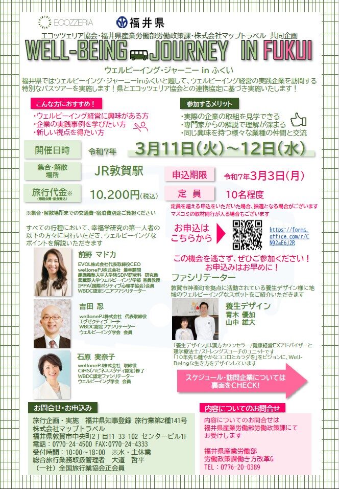 福井県ではウェルビーイング・ジャーニーinふくいと題して、ウェルビーイング経営の実践企業を訪問すると特別なバスツアーを実施します!