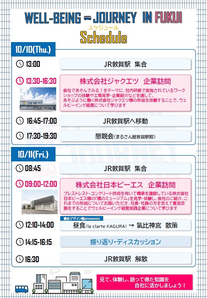 福井県ではウェルビーイング・ジャーニーinふくいと題して、ウェルビーイング経営の実践企業を訪問すると特別なバスツアーを実施します!