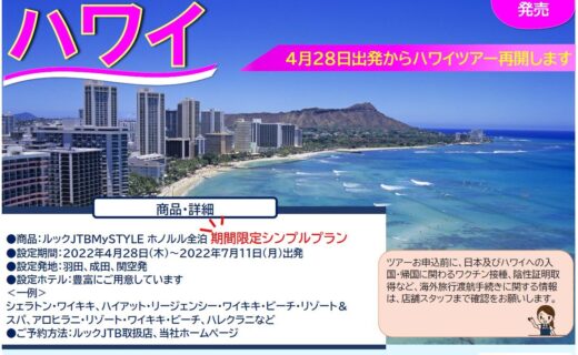 JTB ルック ハワイツアー 販売開始のお知らせ...