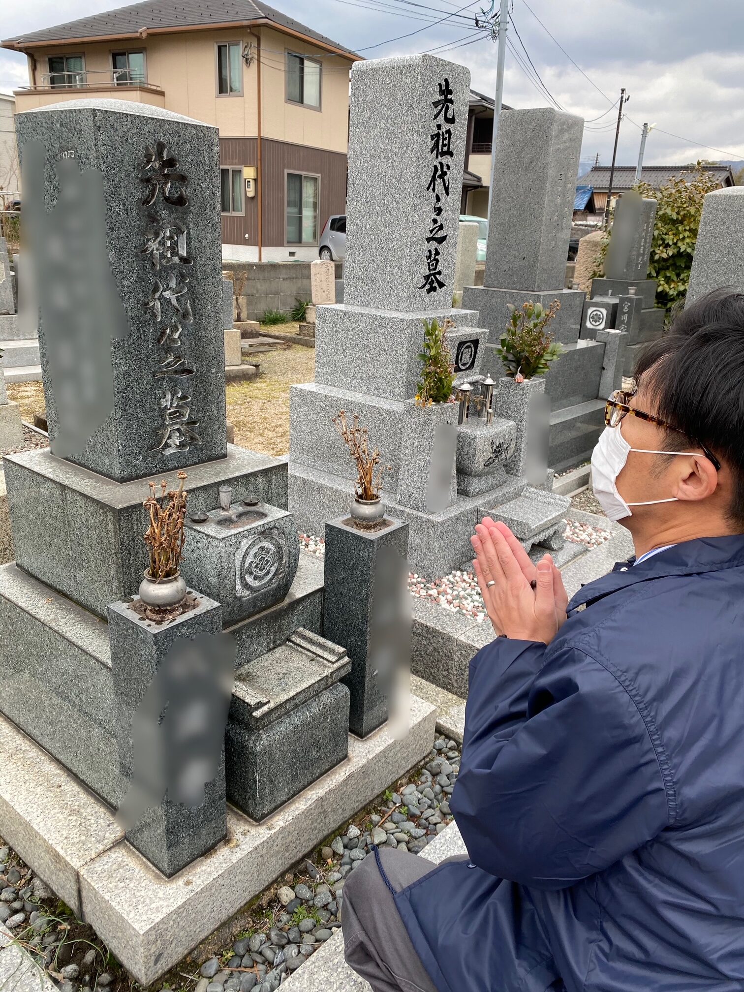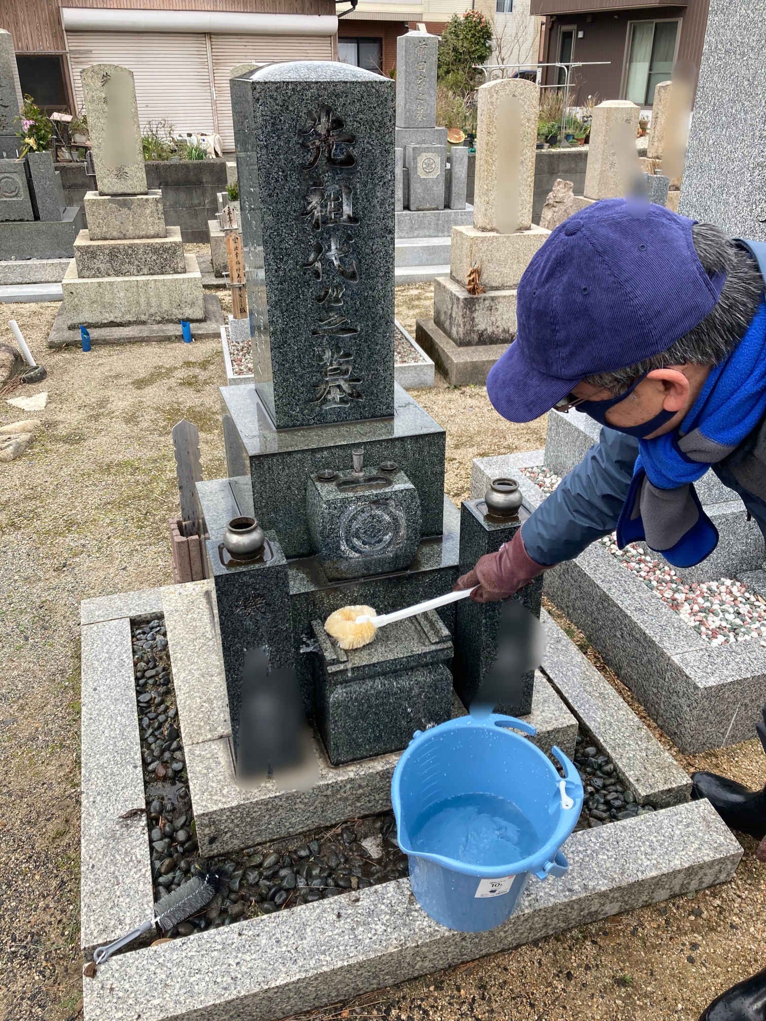 空き家巡回の実地研修後は、そのまま「お墓参り・お墓掃除代行サービス」の実地研修を行いました。今回は季節柄春前ということもあり、ほぼお墓周辺には雑草がない状態でしたが、これも季節によっては異なります。