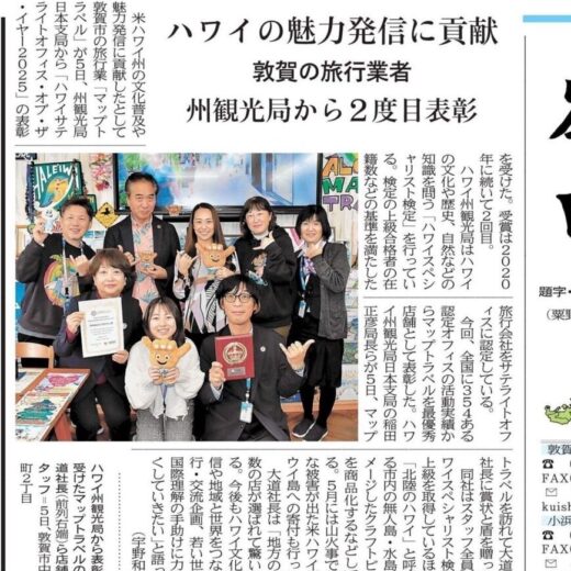 本日の福井新聞朝刊に、ハワイサテライトオフィスオブザイヤー2025受賞の紹介記事を掲載頂きました。 ...