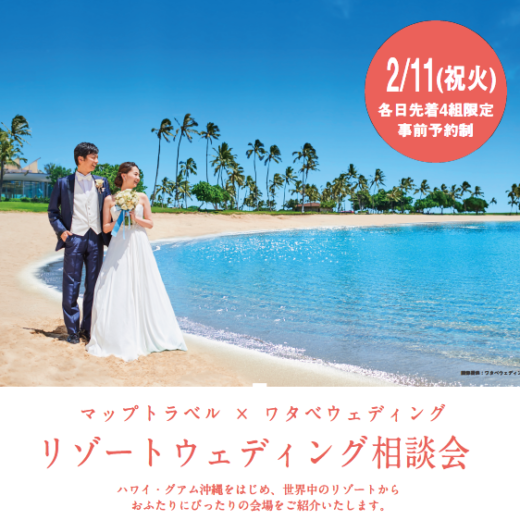 2020年5月3日(日)に予定をしておりました、ワタベウェディング様とのリゾートウェディング相談会は...