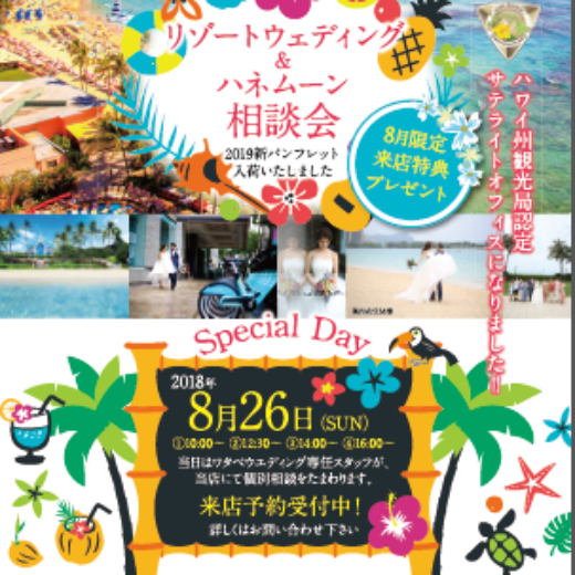 kirameki 12月号でも告知させていただいておりますが、新年早々毎年恒例のリゾートウェディング&ハネムーン相談会を開催いたします!