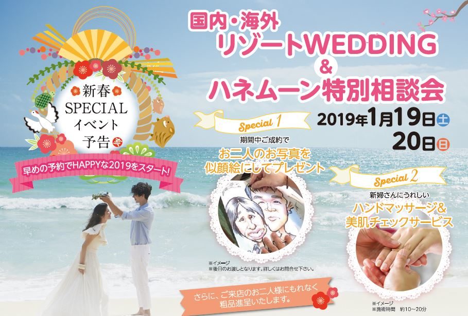 早めのご予約でHAPPYな2019をスタート!ということで、リゾートウェディングは、