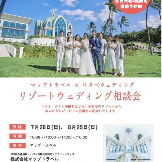 リゾートWedding&ハネムーン相談会ですが、まだ若干の空がございます。